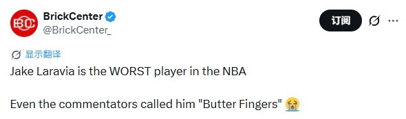 美媒发推写道:“拉拉维亚是NBA最菜的球员!现场解说直呼都其为黄油手(Butter Fingers)!”